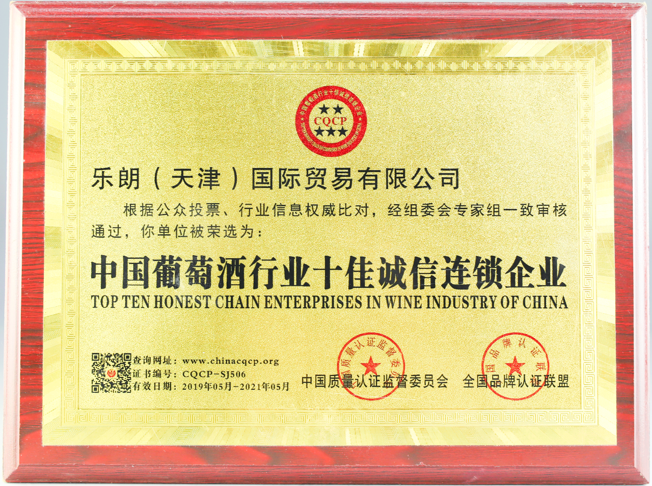 2019年被評為中國葡萄酒行業十佳誠信連鎖企業;