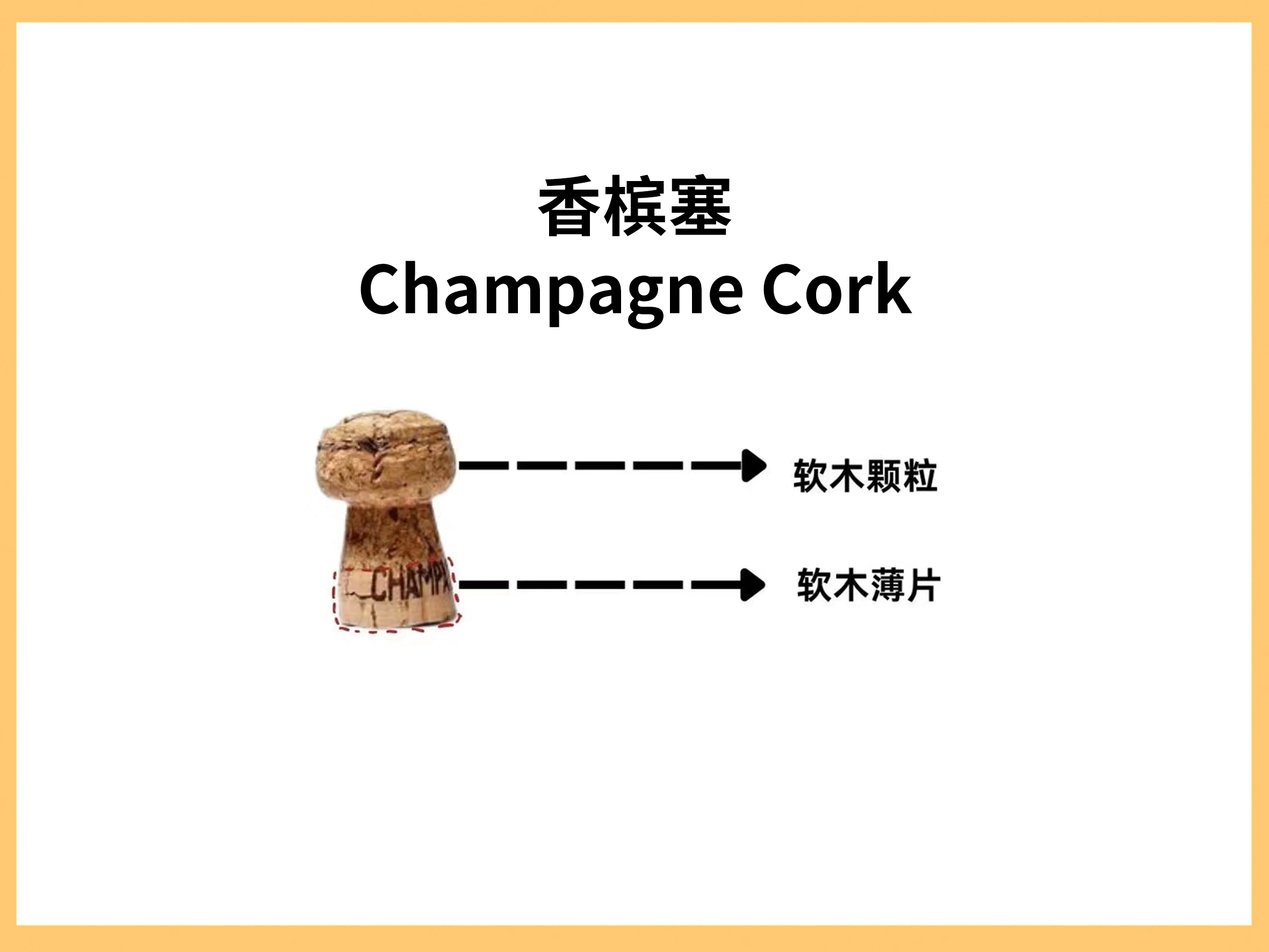香檳塞 :通常使用最優質的壓縮橡木制成,呈蘑菇形狀
