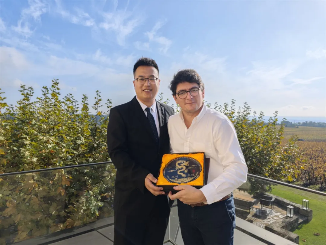 溯源拜訪的最后,溯源團向酒莊送上了具有中國特色的紀念禮品——龍年炭雕,不僅表達了溯源團對卓龍夢特酒莊的美好祝愿,更傳遞了未來建立戰略合作的美好愿景。