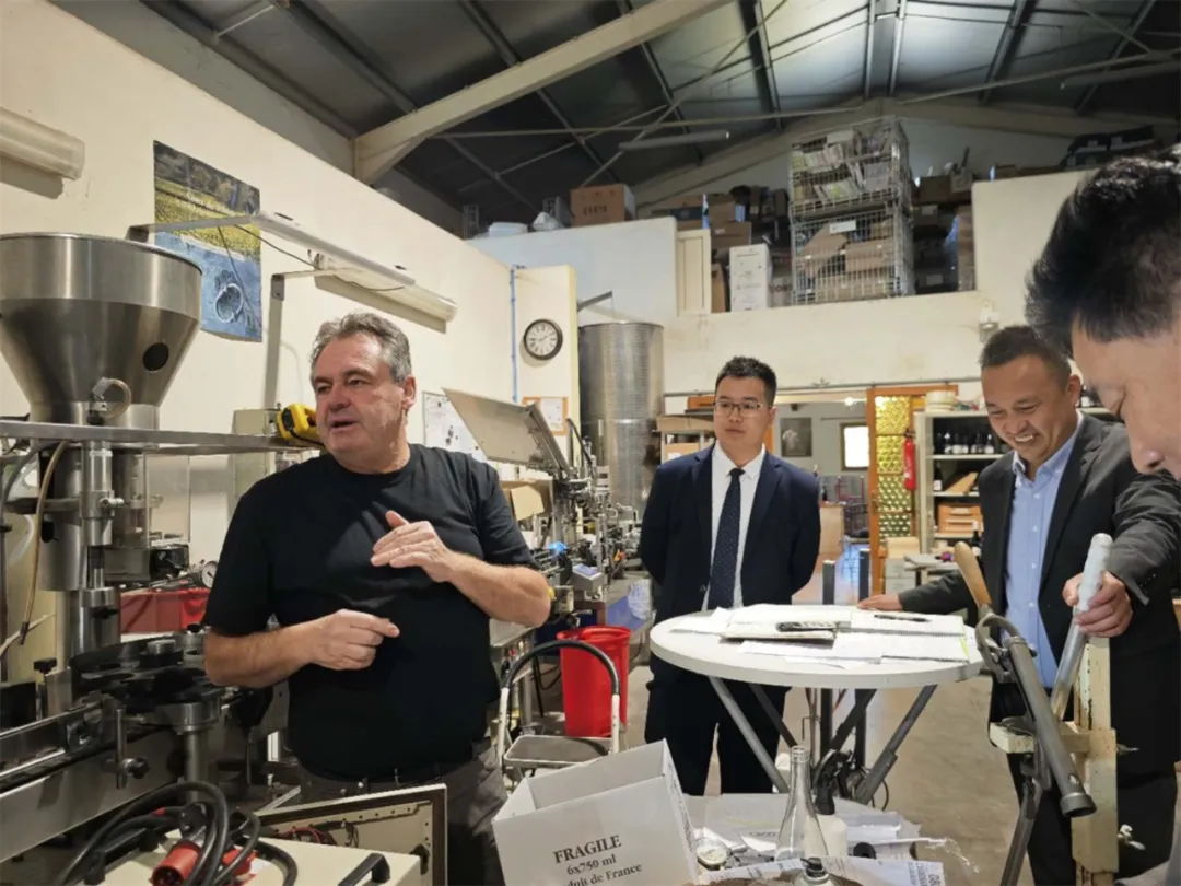 緊接著,莊主帶領大家觀看了酒莊內的小型“貼標設備”。這個設備不僅使用靈活,而且操作高效。他強調,現在酒莊可以針對客戶實際需求,進行瓶身標簽的定制服務。