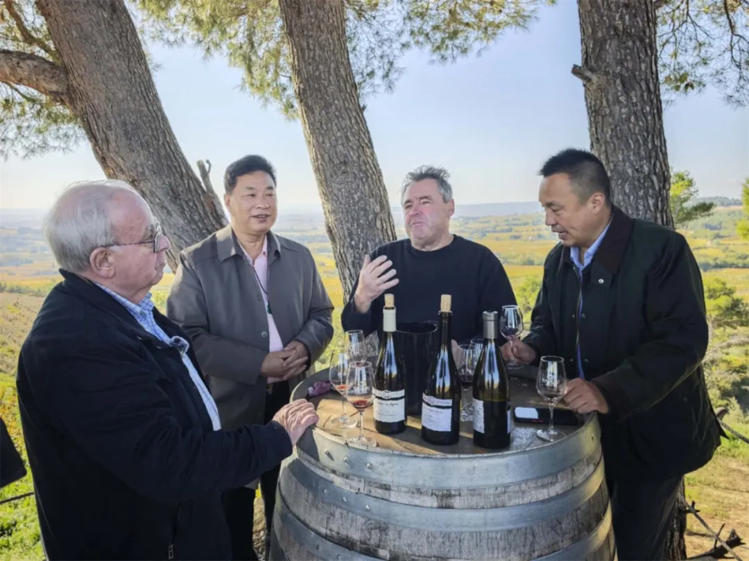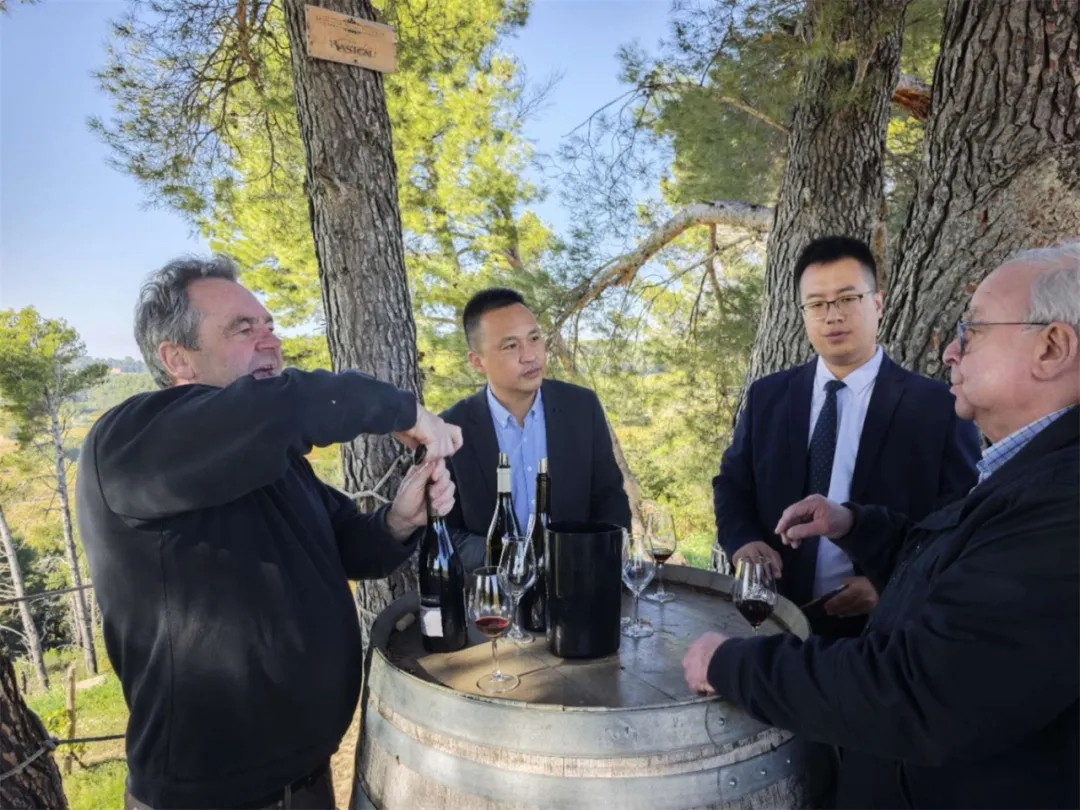在參觀酒莊的葡萄園時,莊主率性拿出酒莊最新生產的葡萄酒邀請溯源團共同品鑒。大家深度交流,暢聊合作,為美好的葡萄酒事業共同干杯。