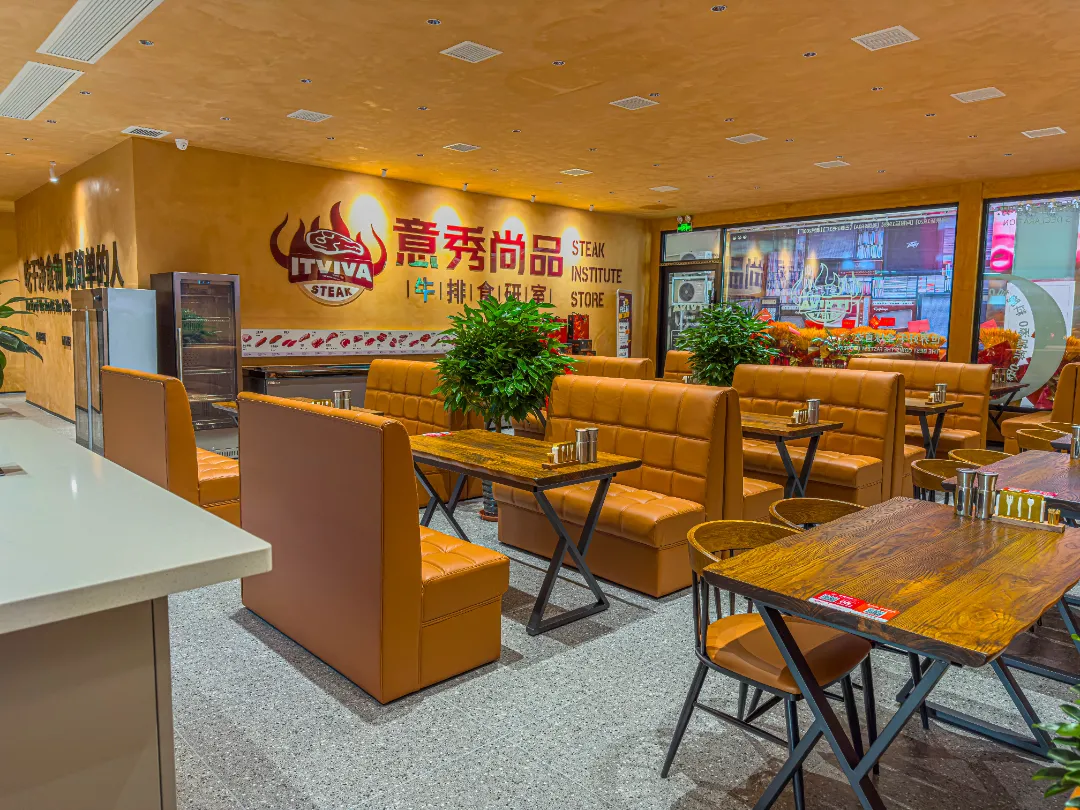 功能分區(qū):就餐區(qū)、牛排加工區(qū)、牛排展示區(qū)
